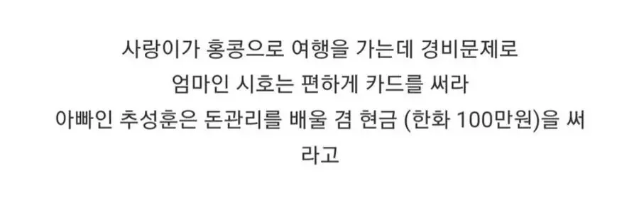 추사랑 홍콩 여행 경비 100만원이면 충분 하다는 추성훈.jpg