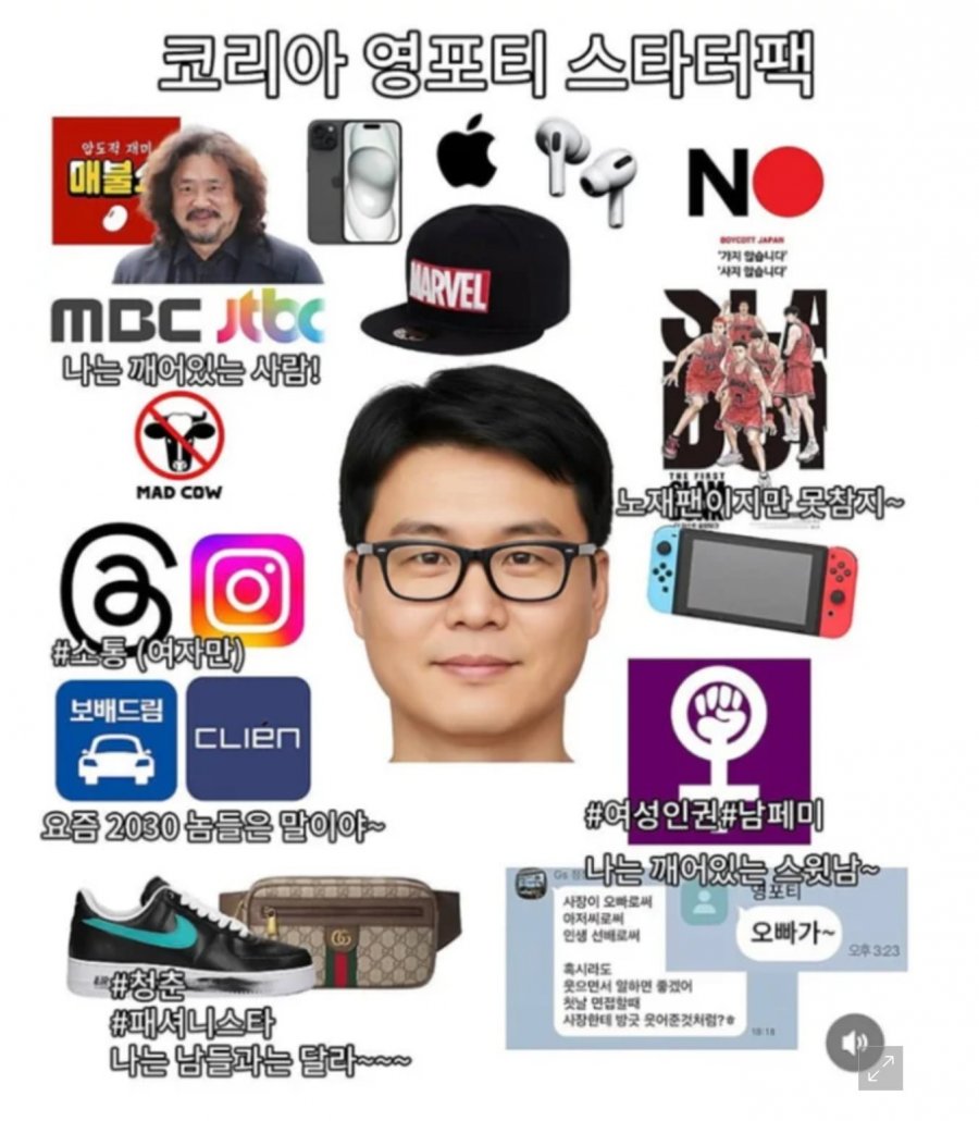 여기서 말하는 ‘영포티’는 단순한 연령이 아니라 하나의 정체성 브랜드처럼 작동한다. 40대의 나이에도 젊은 감각과 진보적 성향을 자처하는 신호가 반복되고, “나는 깨어있는 사람!”, “삼청춘 패셔니스타” 같은 문구가 자기 긍정을 형성한다. 이를 통해 특정 계층이 온라인에서 자신들의 세대적 위치를 재확인하려는 경향이 읽힌다.