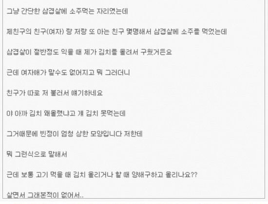 삼겹살 구울때 김치올렸다고 혼났어요 ㄷㄷ.jpg