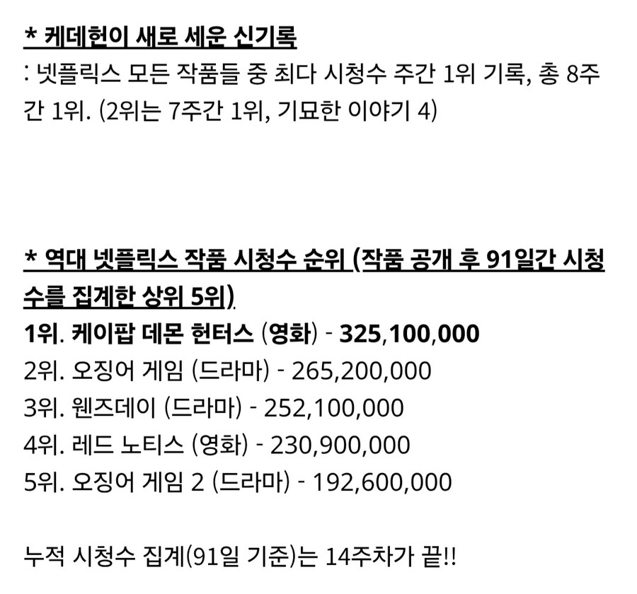 US 데이터도 같은 흐름을 뒷받침한다. 미국 내 TOP 10에서 케데헌의 경쟁 상대를 제치고 1위를 차지했다는 사실은, 한쪽으로는 현지 관객의 충성도, 다른 한쪽으로는 글로벌 팬덤의 네트워크가 작동하고 있음을 말해 준다. 이 같은 지역별 재진입은 콘텐츠의 포용성뿐 아니라, 프로모션이나 입소문 효과의 지속성을 함께 시사한다.
