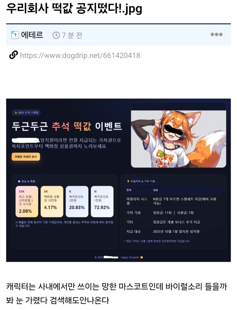 한 회사가 명절을 맞아 내놓은 ‘떡값’ 이벤트는, 직원 복지에 게임적 요소를 결합한 신호다. 가챠처럼 굴러가는 보상 구조가 시선을 끌지만, 그 이면의 의도와 파장을 함께 들여다볼 필요가 있다.