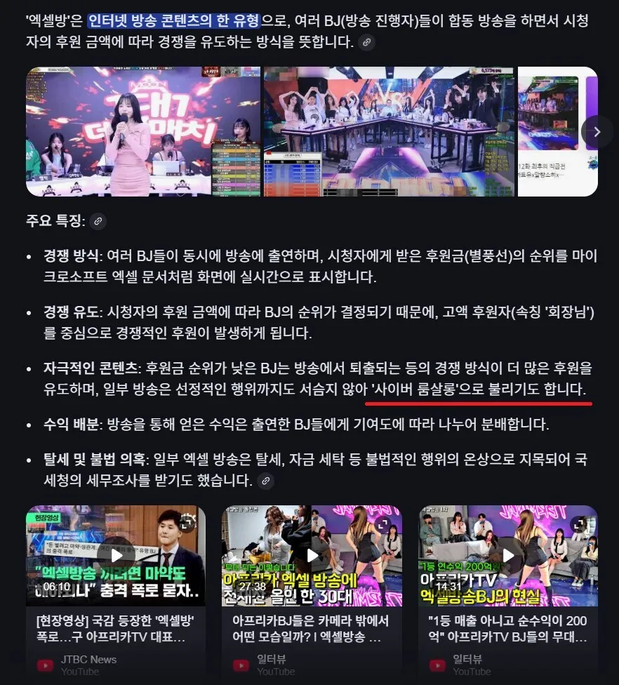 엑셀방송은 한 화면에서 다수의 BJ를 함께 끌어들이고, 시청자들의 후원 금액을 많이 낸 순서대로 보상을 주는 콘텐츠 양식이다. 이 같은 구조는 시청자와 창작자 간의 관계를 새로운 방식으로 재편한다는 점에서 주목받아 왔다.