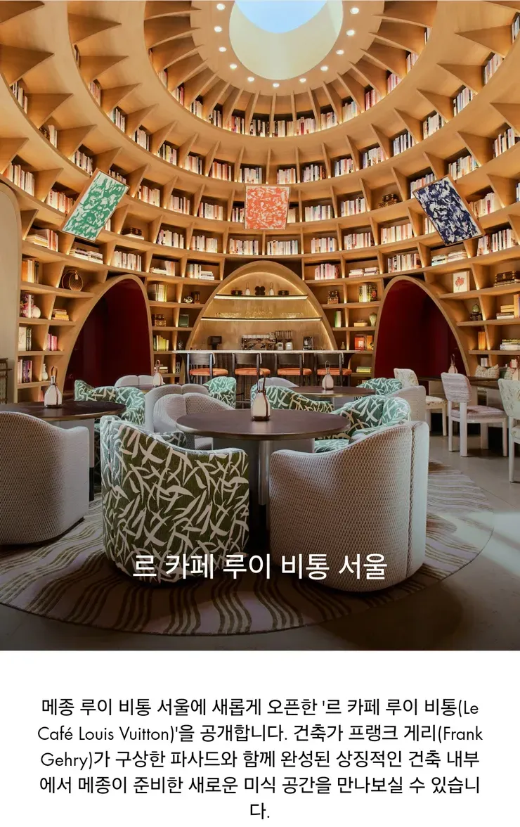 서울 메종 루이 비통의 새 카페, 르 카페 루이 비통이 문을 열었다. 프랭크 게리의 파사드가 먼저 시선을 붙잡고, 내부는 브랜드의 체험을 도시로 끌어들인다. 이 공간은 단순한 카페가 아니라, 소비와 예술이 만나는 한 장면을 우리 일상 속에 선보인다.