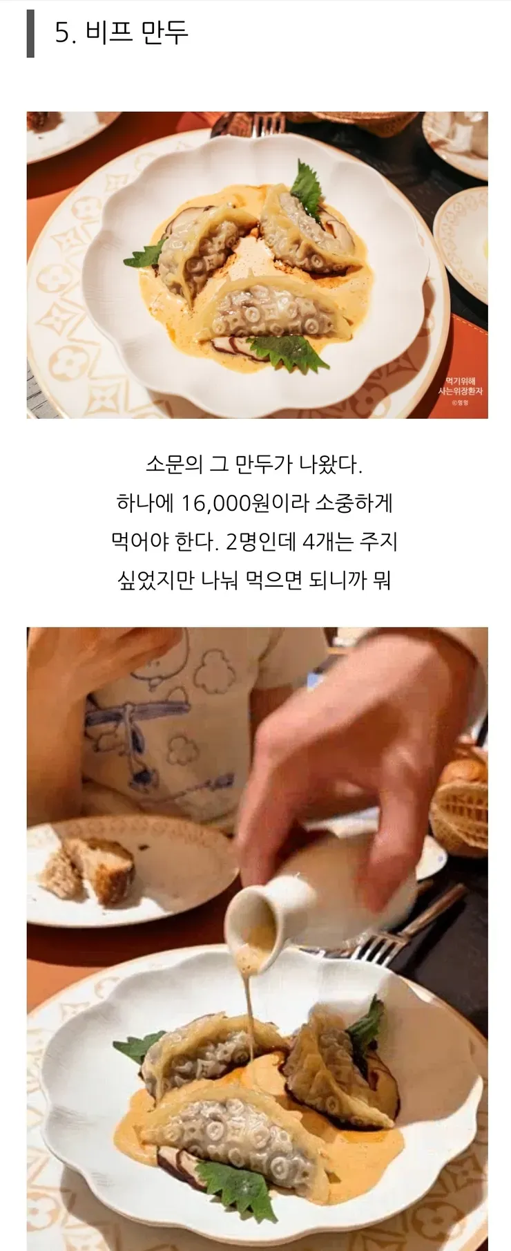 특히 한 "조각"에 16,000원씩 하는 만두가 그렇게 화제네요. ㄷㄷ