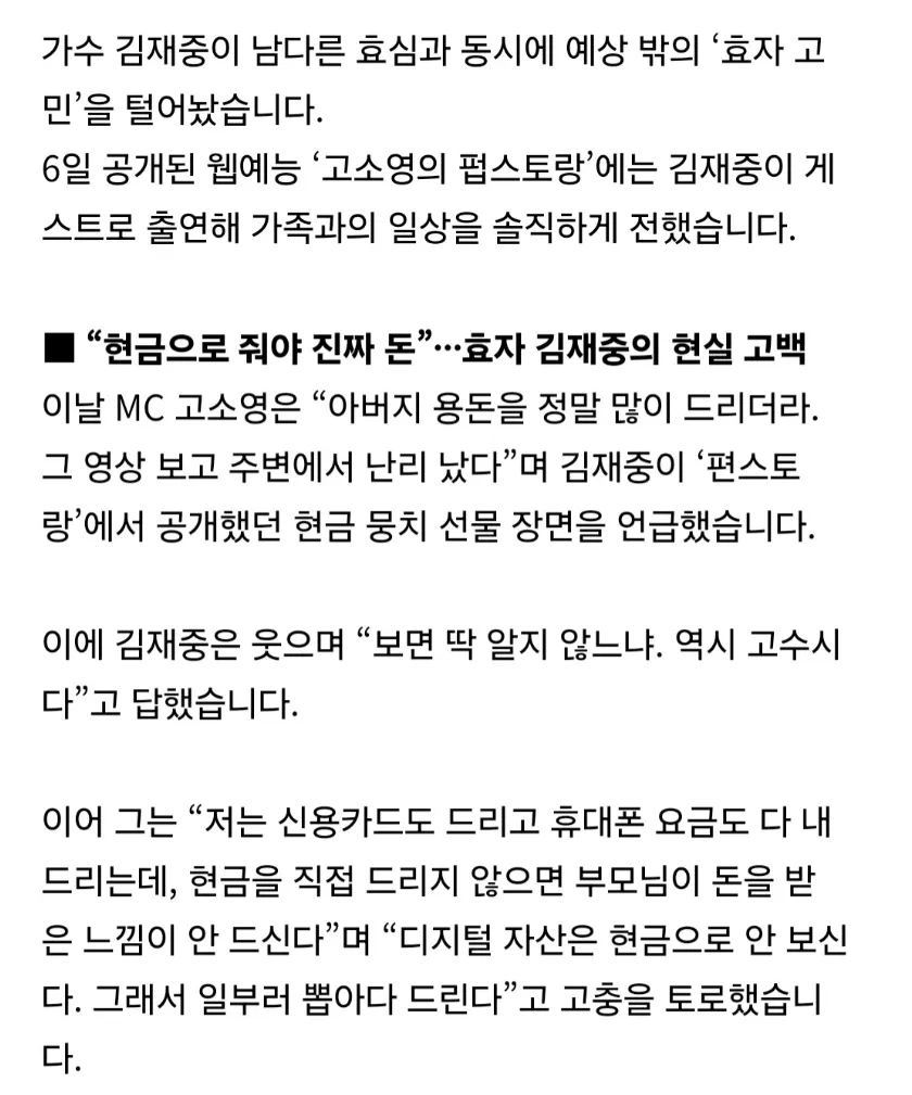 재산 1조 연예인 ㄷㄷㄷㄷㄷㄷ 얼음사이다 쪽지보내기자기소개아이디로 검색전체게시물 15:09 573 회 0 건 돈의 무게는 늘 짐이자 도구다; 다정하고도 냉정하게 서로를 재는 힘이기도 하다. 최근 한 연예인이 자신의 연예인 재산 구성을 공개하며 가족에 대한 관심과, 뜻밖의 현금 선물에 얽힌 생각을 털어놓아 주목을 받았다. 그가 말한 현금 선물의 의미는 단순한 풍요를 넘어, 손에 쥐었을 때만 느껴지는 가족 관계의 온도차를 상기시켰다. 이 글은 그 이야기를 따라가며 맥락과 배경을 함께 들여다본다. 목록 이메일 주소는 공개되지 않습니다. 댓글 * 이름 * 비밀번호 * 비밀글 사용 제목 글쓴이 조회 날짜 국내 펜션 근황 ㅋㅋㅋㅋ 금단비 쪽지보내기자기소개아이디로 검색전체게시물 258 0 1시간 전 금단비 쪽지보내기자기소개아이디로 검색전체게시물 258 1시간 전 이름도 성의없게 짓는 로맨스 스캠 사기꾼.JPG 달콤별 쪽지보내기자기소개아이디로 검색전체게시물 555 0 2시간 전 달콤별 쪽지보내기자기소개아이디로 검색전체게시물 555 2시간 전 하몽은 비싼 햄이니 집에서 직접 만들어보는 빡빡이 아저씨 황희림 쪽지보내기자기소개아이디로 검색전체게시물 714 0 3시간 전 황희림 쪽지보내기자기소개아이디로 검색전체게시물 714 3시간 전 유승준: "국민들이 나에 대해 수십년째 오해중" 차하영 쪽지보내기자기소개아이디로 검색전체게시물 483 0 3시간 전 차하영 쪽지보내기자기소개아이디로 검색전체게시물 483 3시간 전 조선시대에 나타난 외계인.jpg 몽비쥬 쪽지보내기자기소개아이디로 검색전체게시물 619 0 4시간 전 몽비쥬 쪽지보내기자기소개아이디로 검색전체게시물 619 4시간 전 추석에 갑자기 뼈맞은 사람 옆집총각 쪽지보내기자기소개아이디로 검색전체게시물 857 0 4시간 전 옆집총각 쪽지보내기자기소개아이디로 검색전체게시물 857 4시간 전 최단기간에 망한 대기업 쇼핑몰 차하영 쪽지보내기자기소개아이디로 검색전체게시물 748 0 5시간 전 차하영 쪽지보내기자기소개아이디로 검색전체게시물 748 5시간 전 노벨상을 받을 뻔했던 한국인 교수 모카크림 쪽지보내기자기소개아이디로 검색전체게시물 656 0 5시간 전 모카크림 쪽지보내기자기소개아이디로 검색전체게시물 656 5시간 전 경찰이 밝히지않겠다던 이진호 음주운전 신고자 신원을 보도한 디스패치 백림 쪽지보내기자기소개아이디로 검색전체게시물 692 0 6시간 전 백림 쪽지보내기자기소개아이디로 검색전체게시물 692 6시간 전 트럼프 상 안주면 보복 ㅋㅋㅋㅋㅋ 최미 쪽지보내기자기소개아이디로 검색전체게시물 539 0 6시간 전 최미 쪽지보내기자기소개아이디로 검색전체게시물 539 6시간 전 ⭐ 재산 1조 연예인 ㄷㄷㄷㄷㄷㄷ 얼음사이다 쪽지보내기자기소개아이디로 검색전체게시물 574 0 7시간 전 얼음사이다 쪽지보내기자기소개아이디로 검색전체게시물 574 7시간 전 40까지 결혼 못 한 노처녀 흠... 얼음사이다 쪽지보내기자기소개아이디로 검색전체게시물 662 0 7시간 전 얼음사이다 쪽지보내기자기소개아이디로 검색전체게시물 662 7시간 전 남편이 암에 걸려 쿠팡 새벽 배송하는 외국인아내의 삶 아시가루 쪽지보내기자기소개아이디로 검색전체게시물 711 0 7시간 전 아시가루 쪽지보내기자기소개아이디로 검색전체게시물 711 7시간 전 드디어 올라온 김종국씨 신혼 여행 브이로그 영상 고예 쪽지보내기자기소개아이디로 검색전체게시물 549 0 8시간 전 고예 쪽지보내기자기소개아이디로 검색전체게시물 549 8시간 전 논란이라는 한국전력공사 8천원 구내식당 점심 백림 쪽지보내기자기소개아이디로 검색전체게시물 751 0 8시간 전 백림 쪽지보내기자기소개아이디로 검색전체게시물 751 8시간 전 키 수술 받은 161cm 남성 황희림 쪽지보내기자기소개아이디로 검색전체게시물 535 0 8시간 전 황희림 쪽지보내기자기소개아이디로 검색전체게시물 535 8시간 전 나이들면 외모적으로 진짜 차이난다는 부분.jpg 모카크림 쪽지보내기자기소개아이디로 검색전체게시물 448 0 8시간 전 모카크림 쪽지보내기자기소개아이디로 검색전체게시물 448 8시간 전 의자선택으로 보는 심리테스트.jpg 백림 쪽지보내기자기소개아이디로 검색전체게시물 462 0 8시간 전 백림 쪽지보내기자기소개아이디로 검색전체게시물 462 8시간 전 정신나간 오늘자 금 시세.jpg 신림사 쪽지보내기자기소개아이디로 검색전체게시물 392 0 8시간 전 신림사 쪽지보내기자기소개아이디로 검색전체게시물 392 8시간 전 너네 허무하게 돈 날린적 있냐 황희림 쪽지보내기자기소개아이디로 검색전체게시물 484 0 8시간 전 황희림 쪽지보내기자기소개아이디로 검색전체게시물 484 8시간 전 트럼프 막내 아드님 1000억원 수익 달성 ㄷㄷㄷ.jpg 신림사 쪽지보내기자기소개아이디로 검색전체게시물 416 0 8시간 전 신림사 쪽지보내기자기소개아이디로 검색전체게시물 416 8시간 전 캄보디아가 대단한 나라인 이유.jpg 신림사 쪽지보내기자기소개아이디로 검색전체게시물 557 0 8시간 전 신림사 쪽지보내기자기소개아이디로 검색전체게시물 557 8시간 전 김세의 관련 제보를 하면 최대 7천만원을 준다는 장사의신 몽비쥬 쪽