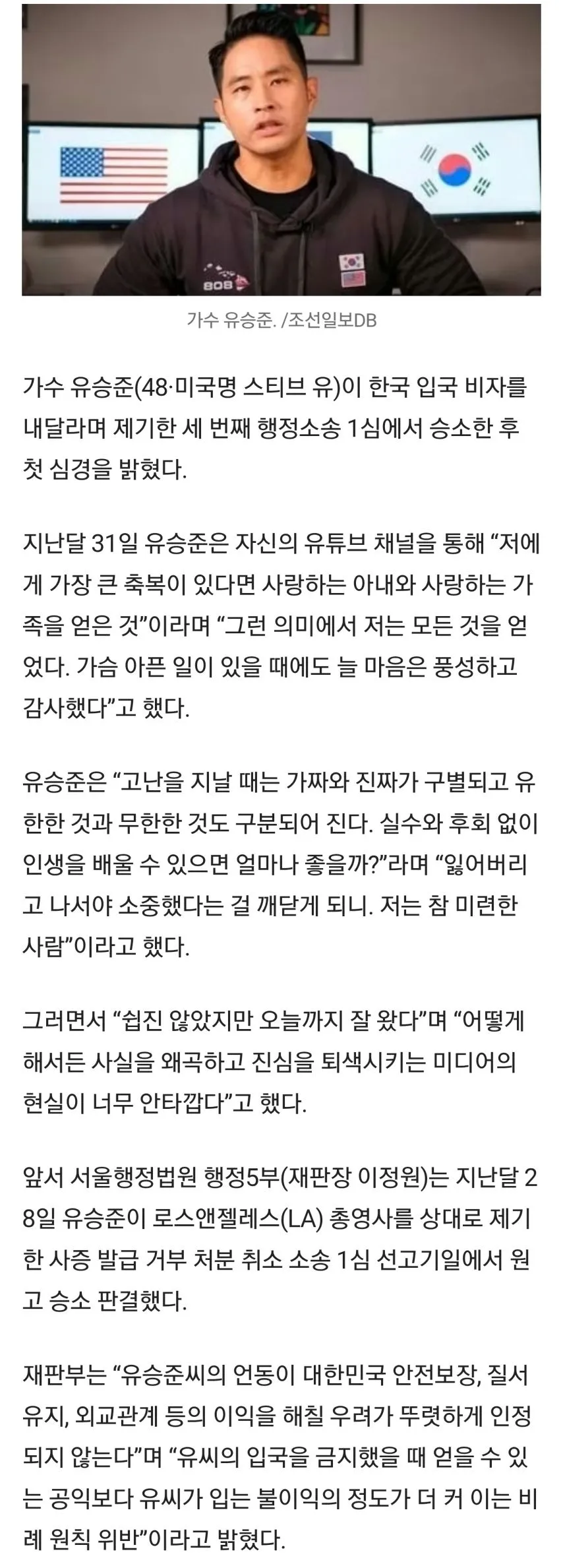 유승준: "국민들이 나에 대해 수십년째 오해중"