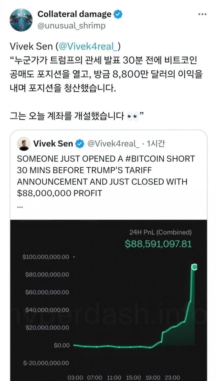 배경은 더 자극적입니다. 계좌를 새로 파고든 이들의 숏 포지션이 발표 직전 급격히 커졌다고 전해지고, 거대한 자금 흐름이 움직인 흔적이 남아 있다는 말도 있습니다. 3억 달러대의 포지션이 한때 화제가 되었고, 화면에 비친 손익 수치가 장난감 같은 그래프로 지나갔다고도 하죠. 이 모든 루머의 핵심은 늘 그렇듯, 누구나 접근 가능한 숫자와 아닌 숫자의 차이가 만들어낸 신뢰의 미세한 균열에 있습니다.