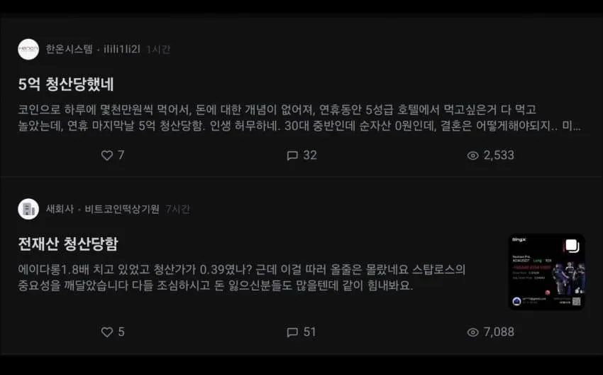 자세히 들어보면 손실의 원인은 각각 다르지만 공통 코드는 스탑로스의 부재나 과도한 레버리지일 때가 많대요. 어떤 사람은 연휴 동안 맛있게 먹고 놀았는데, 마지막날 5억이 증발했다며 한숨을 쉬고요. 또 다른 이야기는 선물 거래의 힘이 너무 커서 원금의 일부조차 돌려받지 못했다는 거예요. 이쯤 되면, 누가 옳았고 누가 잘못했는지보다 '다음에 어떻게 대처할지'가 더 중요한 화두인 듯합니다?