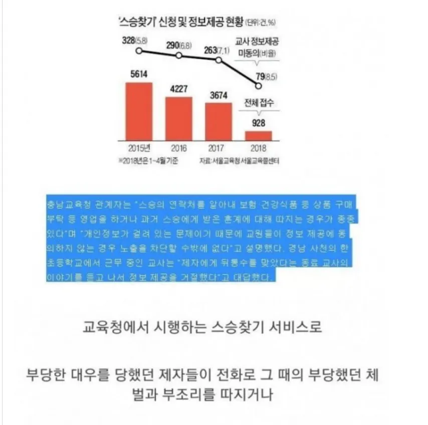 현재 상황은 더 복잡하다. 제자들이 과거의 체벌이나 부조리를 털어놓고 전화나 직접 만나 묻는 사례가 늘어나고 있다. 그로 인해 교원들이 정보 제공 거부를 선택하는 경향이 뚜렷해졌다는 말도 나온다. 일부는 ‘세대 간 갈등의 표출’이라고 보고, 다른 일부는 교실의 권력관계가 바뀌었다는 신호라고 본다. 여러 해석이 교차하는 가운데, 이 흐름이 정말 교실의 분위기를 바꿀 수 있을지 모두의 관심사다.