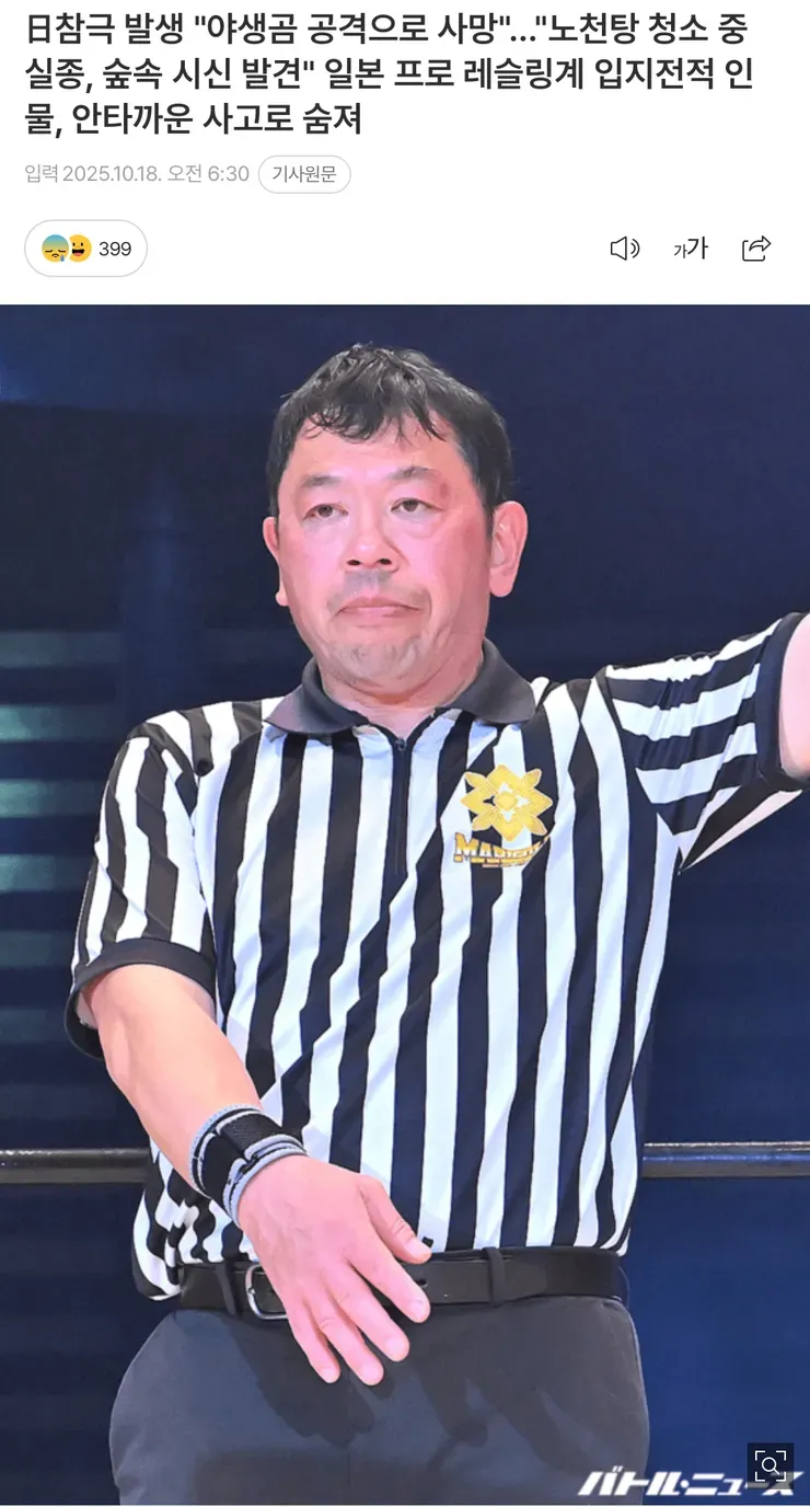 日참극 발생 '야생곰 공격으로 사망'...'노천탕 청소 중 실종, 숲속 시신 발견' 일본 프