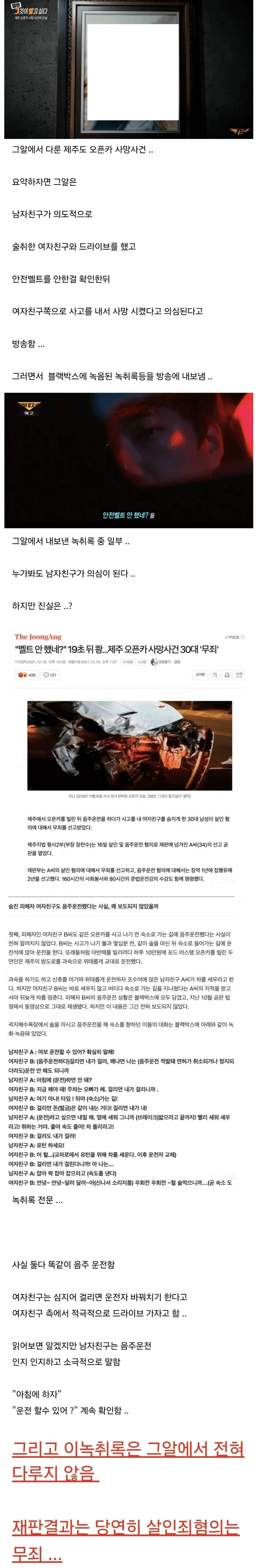 배경은 생각보다 복합적이다. 보도에 따르면 두 운전자는 술을 마신 상태에서 차량을 운전했고, 사건의 중요한 단서는 블랙박스 녹취록에 남아 있다고 한다. 대화 속에서 남자친구의 ‘운전할 수 있어?’ 같은 물음과, 여자친구의 ‘걸리면 내가 걸린다’는 합의가 오가던 모습이 긴장감을 만든다. 이 녹취록은 방송에서 일부 공개되었지만, 관객들은 맥락을 놓치지 않으려 애쓴다.