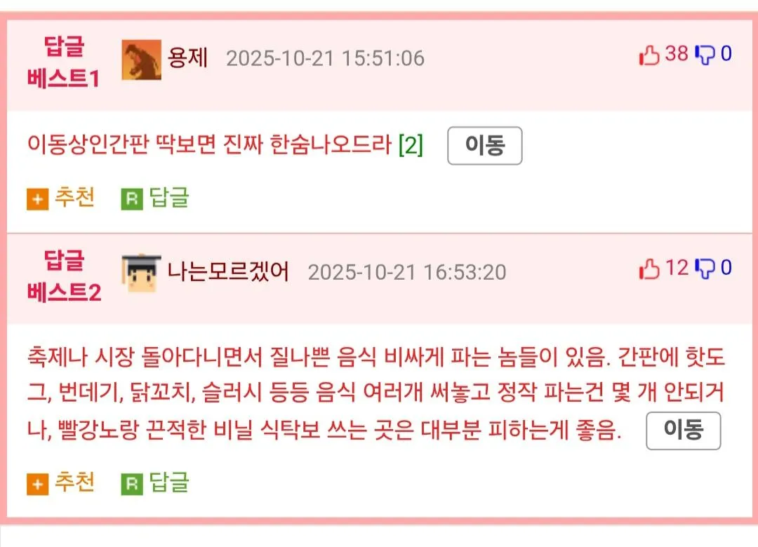 그 사이로 들려오는 이야기들은 제법 다양했어요. 외부 상인 금지로 덜 복잡해졌다는 말도 있고, 반대로 축제의 길목에 서 있던 간판들 사이로 이익이 재배치된 것 같다는 우려도 있었죠. 간판은 반짝이고 메뉴는 단순하며, 매번 같은 가격표가 반복되니 신뢰가 생기는 반면, ‘정작 우리 동네 상인들의 기회는 어디로 가는 걸까’라는 의문도 커졌습니다. 이 규칙이 소비자에게 주는 안전감이, 동시에 시장의 다양성을 잠식하는 건 아닐지 스스로에게 물어보게 되더군요.