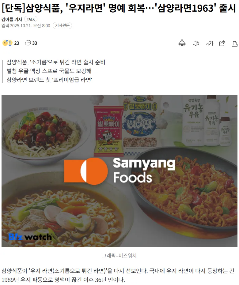 우지 라면이 다시 등장한다는 소문이 도심 카페 골목에서까지 살랑살랑 퍼진다. 삼양식품이 36년 만에 그 이름을 꺼내는 걸까, 사람들은 재방송 같은 기대를 품는다. 1989년의 우지 파동이 아직도 주근깨처럼 남아 있는 현실에서, 이 소식은 끝이 뚜렷하지 않은 드라마의 예고편 같다. 어쩌면 오늘의 포스트는 그 흐름의 실마리를 따라가 보려 한다.