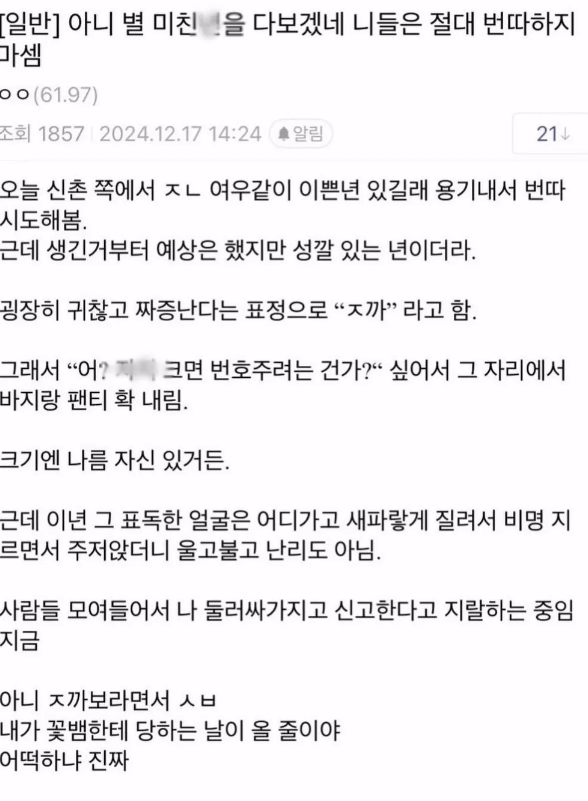 절대 번따하지 마세요 황희림 쪽지보내기자기소개아이디로 검색전체게시물 11:36 549 회 0 건 핵심 키워드로 뽑자면, 성범죄 대응, 신촌의 사건 루머, 그리고 온라인 커뮤니티의 역할 정도일 거다. 오늘 밤 신촌 근처에서 벌어진 일이 SNS에서 파편처럼 흩어지며 사람들의 상상력을 자극했다. 이건 소문이 아니라, 위험한 행위와 그에 맞서는 우리 사회의 반응을 시험하는 작은 실험 같았다. 글을 읽다 보니, 이슈의 흐름은 하나의 목소리보다 커뮤니티의 의심과 호기심이 합쳐진 신호였다. 목록 이메일 주소는 공개되지 않습니다. 댓글 * 이름 * 비밀번호 * 비밀글 사용 제목 글쓴이 조회 날짜 공시 떨어지고 자살하려다 월 800 모카크림 쪽지보내기자기소개아이디로 검색전체게시물 263 0 35분 전 모카크림 쪽지보내기자기소개아이디로 검색전체게시물 263 35분 전 국내 불법유통중인 안락사약 밝은횃불 쪽지보내기자기소개아이디로 검색전체게시물 313 0 1시간 전 밝은횃불 쪽지보내기자기소개아이디로 검색전체게시물 313 1시간 전 ⭐ 절대 번따하지 마세요 황희림 쪽지보내기자기소개아이디로 검색전체게시물 550 0 3시간 전 황희림 쪽지보내기자기소개아이디로 검색전체게시물 550 3시간 전 계란후라이 셀프 코너에서 "아가씨 내꺼도 하나해줘" 논란 최미 쪽지보내기자기소개아이디로 검색전체게시물 664 0 4시간 전 최미 쪽지보내기자기소개아이디로 검색전체게시물 664 4시간 전 돈자랑 하는 친구 세계는지금 쪽지보내기자기소개아이디로 검색전체게시물 602 0 6시간 전 세계는지금 쪽지보내기자기소개아이디로 검색전체게시물 602 6시간 전 현재 의사들이 총력으로 여론 조작하고 있는 사안 고예 쪽지보내기자기소개아이디로 검색전체게시물 732 0 7시간 전 고예 쪽지보내기자기소개아이디로 검색전체게시물 732 7시간 전 다시 등장한 제주도 비계 이슈 최미 쪽지보내기자기소개아이디로 검색전체게시물 906 0 8시간 전 최미 쪽지보내기자기소개아이디로 검색전체게시물 906 8시간 전 아침마당 태도 논란 게스트.jpg 달콤별 쪽지보내기자기소개아이디로 검색전체게시물 758 0 10시간 전 달콤별 쪽지보내기자기소개아이디로 검색전체게시물 758 10시간 전 캄보디아 납치 피해자(?) 안구부터 적출 금단비 쪽지보내기자기소개아이디로 검색전체게시물 824 0 11시간 전 금단비 쪽지보내기자기소개아이디로 검색전체게시물 824 11시간 전 한글이 받는 오해 차하영 쪽지보내기자기소개아이디로 검색전체게시물 926 0 12시간 전 차하영 쪽지보내기자기소개아이디로 검색전체게시물 926 12시간 전 90년대 성희롱 ㅋㅋㅋ 최미 쪽지보내기자기소개아이디로 검색전체게시물 913 0 14시간 전 최미 쪽지보내기자기소개아이디로 검색전체게시물 913 14시간 전 은근히 많은 사람이 믿는 사이비 역사책.jpg 재미난도시락 쪽지보내기자기소개아이디로 검색전체게시물 994 0 15시간 전 재미난도시락 쪽지보내기자기소개아이디로 검색전체게시물 994 15시간 전 ??? : 한국빵은 수준이 달라요.jpg 몽비쥬 쪽지보내기자기소개아이디로 검색전체게시물 832 0 16시간 전 몽비쥬 쪽지보내기자기소개아이디로 검색전체게시물 832 16시간 전 회사 관둘 때 직장상사의 조언 금단비 쪽지보내기자기소개아이디로 검색전체게시물 958 0 18시간 전 금단비 쪽지보내기자기소개아이디로 검색전체게시물 958 18시간 전 신라장군 이사부의 진실.jpg 동태탕 쪽지보내기자기소개아이디로 검색전체게시물 823 0 19시간 전 동태탕 쪽지보내기자기소개아이디로 검색전체게시물 823 19시간 전 키즈카페에서 모르는 아이와 놀아주면 안되는 이유 류훈아 쪽지보내기자기소개아이디로 검색전체게시물 784 0 21시간 전 류훈아 쪽지보내기자기소개아이디로 검색전체게시물 784 21시간 전 오랜 첫사랑을 끝낸 여학생 백림 쪽지보내기자기소개아이디로 검색전체게시물 1,008 0 22시간 전 백림 쪽지보내기자기소개아이디로 검색전체게시물 1,008 22시간 전 등산 후 식사비 더치페이 지니까꿍 쪽지보내기자기소개아이디로 검색전체게시물 837 0 23시간 전 지니까꿍 쪽지보내기자기소개아이디로 검색전체게시물 837 23시간 전 노란장판의 비밀.jpg 류훈아 쪽지보내기자기소개아이디로 검색전체게시물 891 0 25-10-22 류훈아 쪽지보내기자기소개아이디로 검색전체게시물 891 25-10-22 둘로 갈리는 보조배터리 사용법 하선훈 쪽지보내기자기소개아이디로 검색전체게시물 766 0 25-10-22 하선훈 쪽지보내기자기소개아이디로 검색전체게시물 766 25-10-22 황금알을 낳는 알바생의 배를 갈라버린 사장님. 류훈아 쪽지보내기자기소개아이디로 검색전체게시물 936 0 25-10-22 류훈아 쪽지보내기자기소개아이디로 검색전체게시물 936 25-10-22 결혼을 결심하게 된 계기 모카크림 쪽지보내기자기소개아이디로 검색전체게시물 830 0 25-10-22 모카크림 쪽지보내기자기소개아이디로 검색전체게시물 830 25-10-22 디카프리오가 가장 사랑했던 여자친구 밝은횃불 쪽지보내기자기소개아이디로 검색전체게시물 674 0 25-10-22 밝은횃불 쪽지보내기자기소개아이디로 검색전체게시물 674 25-10-22 삼양식품, '우지라면' 명예 회복…'삼양라면1963' 출시 밝은횃불 쪽지보