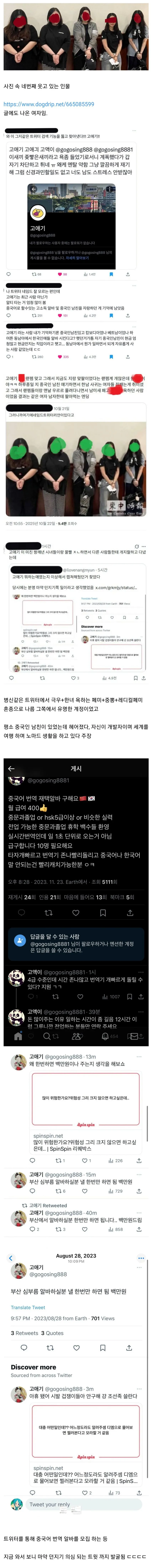 현재 흐름은 한 계정이 '중국어 번역 알바'를 크게 광고하는 글에서 시작된다. 고액의 수당과, 때로는 하루에 긴 시간을 필요로 한다는 묘사가 이어지면서 관심이 커진다. 게다가 '중국인 남자친구' 이야기나 현금을 다루는 직업에 관한 암시가 덧붙여지며, 이 루머의 세계가 현실과 어떻게 연결될지 사람들의 상상력을 자극한다. 과연 이 모든 이야기가 서로 연결된 큰 그림의 조각일까, 아니면 클릭을 부르는 연출일까?