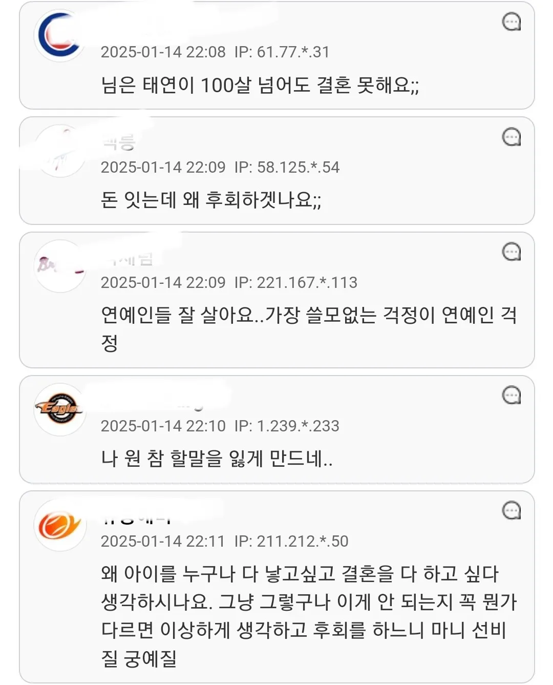 현재의 얘기는 여전히 퍼즐 조각처럼 흩어져 있습니다. 어떤 이들은 '스케줄이 줄고 돈이 많아도, 자녀를 갖고 육아에 매달리는 삶이 더 의미 있을까' 하고 추측하고, 또 다른 이들은 '그 반대일 수도 있다'고 말하지요. 결국 이 논의의 핵심은 결혼의 결정이 삶의 모든 것을 바꾸는 것은 아니라는 점일지도 모릅니다. 이런 관점이 팬덤 안에서도 한층 차분한 대화를 낳도록 했으면 좋겠어요.
