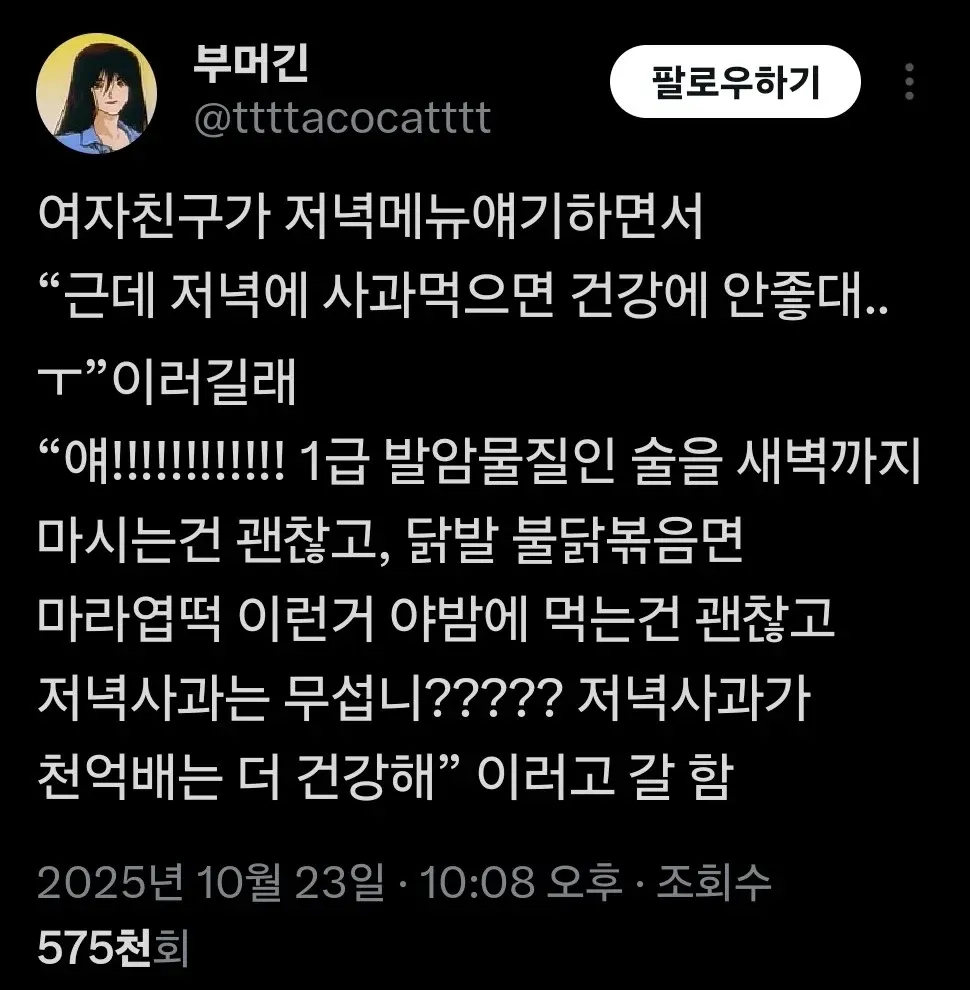 저녁에 사과 먹으면 안좋다던데? 최미 쪽지보내기자기소개아이디로 검색전체게시물 17:53 518 회 0 건 하긴.. 저녁에 사과를 먹으면 건강에 안 좋다더라. 목록 이메일 주소는 공개되지 않습니다. 댓글 * 이름 * 비밀번호 * 비밀글 사용 제목 글쓴이 조회 날짜 김혜수가 말하는 과자 먹고 살쪘을때 특징 최미 쪽지보내기자기소개아이디로 검색전체게시물 448 0 36분 전 최미 쪽지보내기자기소개아이디로 검색전체게시물 448 36분 전 전신문신을 한 6살짜리 애엄마 황희림 쪽지보내기자기소개아이디로 검색전체게시물 538 0 2시간 전 황희림 쪽지보내기자기소개아이디로 검색전체게시물 538 2시간 전 ⭐ 저녁에 사과 먹으면 안좋다던데? 최미 쪽지보내기자기소개아이디로 검색전체게시물 519 0 3시간 전 최미 쪽지보내기자기소개아이디로 검색전체게시물 519 3시간 전 여자 트레이너가 PT 하는거 가관이더라 차하영 쪽지보내기자기소개아이디로 검색전체게시물 476 0 4시간 전 차하영 쪽지보내기자기소개아이디로 검색전체게시물 476 4시간 전 이순신장군의 알려지지 않은 업적 재미난도시락 쪽지보내기자기소개아이디로 검색전체게시물 684 0 6시간 전 재미난도시락 쪽지보내기자기소개아이디로 검색전체게시물 684 6시간 전 카페에서 20대 여자에게 말 건 40대 남자 도레미 쪽지보내기자기소개아이디로 검색전체게시물 672 0 7시간 전 도레미 쪽지보내기자기소개아이디로 검색전체게시물 672 7시간 전 일본이 공개 안하는 한글불화. 황희림 쪽지보내기자기소개아이디로 검색전체게시물 847 0 8시간 전 황희림 쪽지보내기자기소개아이디로 검색전체게시물 847 8시간 전 한국 거주 인도인이 인도에 못 돌아가는 이유.jpg 얼음사이다 쪽지보내기자기소개아이디로 검색전체게시물 869 0 10시간 전 얼음사이다 쪽지보내기자기소개아이디로 검색전체게시물 869 10시간 전 결제했는데 무인점포에 일주일 동안 사진 박제된 초등학생.jpg 류훈아 쪽지보내기자기소개아이디로 검색전체게시물 904 0 11시간 전 류훈아 쪽지보내기자기소개아이디로 검색전체게시물 904 11시간 전 토크쇼에서 무쌍찍는 단타의 신.jpg 세계는지금 쪽지보내기자기소개아이디로 검색전체게시물 908 0 12시간 전 세계는지금 쪽지보내기자기소개아이디로 검색전체게시물 908 12시간 전 스토커로부터 구해달라고 했을때 시민들 반응.jpg 황희림 쪽지보내기자기소개아이디로 검색전체게시물 769 0 14시간 전 황희림 쪽지보내기자기소개아이디로 검색전체게시물 769 14시간 전 어느 피부과 의사의 충고. 얼음사이다 쪽지보내기자기소개아이디로 검색전체게시물 978 0 15시간 전 얼음사이다 쪽지보내기자기소개아이디로 검색전체게시물 978 15시간 전 2030 한국 남자들 ㅈ된 이유.jpg 하선훈 쪽지보내기자기소개아이디로 검색전체게시물 969 0 17시간 전 하선훈 쪽지보내기자기소개아이디로 검색전체게시물 969 17시간 전 PC방 요식업자가 괴로운 이유 옆집총각 쪽지보내기자기소개아이디로 검색전체게시물 887 0 18시간 전 옆집총각 쪽지보내기자기소개아이디로 검색전체게시물 887 18시간 전 요즘들어 늘고 있다는 공원 민폐.jpg 차하영 쪽지보내기자기소개아이디로 검색전체게시물 1,045 0 19시간 전 차하영 쪽지보내기자기소개아이디로 검색전체게시물 1,045 19시간 전 심각한 자살률 근황.jpg 달콤별 쪽지보내기자기소개아이디로 검색전체게시물 913 0 21시간 전 달콤별 쪽지보내기자기소개아이디로 검색전체게시물 913 21시간 전 대놓고 배꼈다가 걸린 파리바게트 지니까꿍 쪽지보내기자기소개아이디로 검색전체게시물 1,036 0 22시간 전 지니까꿍 쪽지보내기자기소개아이디로 검색전체게시물 1,036 22시간 전 똑같은 자격증 3번이나 취득한 사람 황희림 쪽지보내기자기소개아이디로 검색전체게시물 1,087 0 23시간 전 황희림 쪽지보내기자기소개아이디로 검색전체게시물 1,087 23시간 전 수학여행가서 선생님에게 감귤소주 사달라는 학생 지니까꿍 쪽지보내기자기소개아이디로 검색전체게시물 984 0 25-10-26 지니까꿍 쪽지보내기자기소개아이디로 검색전체게시물 984 25-10-26 소녀시대 멤버들은 결혼 안한 거 굉장히 후회할듯 도레미 쪽지보내기자기소개아이디로 검색전체게시물 993 0 25-10-26 도레미 쪽지보내기자기소개아이디로 검색전체게시물 993 25-10-26 10년간 800억 혈세를 들여서 만든 것 신림사 쪽지보내기자기소개아이디로 검색전체게시물 870 0 25-10-26 신림사 쪽지보내기자기소개아이디로 검색전체게시물 870 25-10-26 충격적인 캄보디아 여자 조직원 정체 모카크림 쪽지보내기자기소개아이디로 검색전체게시물 1,052 0 25-10-26 모카크림 쪽지보내기자기소개아이디로 검색전체게시물 1,052 25-10-26 과학적으로 입증된 사실 차하영 쪽지보내기자기소개아이디로 검색전체게시물 1,012 0 25-10-26 차하영 쪽지보내기자기소개아이디로 검색전체게시물 1,012 25-10-26 캄보디아 재판 근황ㄷㄷ.jpg 차하영 쪽지보내기자기소개아이디로 검색전체게시물 1,610 0 25-10-26 차하영 쪽지보내기자기소개아이디로 검색전체게시물 1,610 25-10-26 건달 유튜버 칼부림 사건 차하영 쪽지보내기자기소개아이디로 검색전체게시물 1,767 0 25-10-25 차하영 