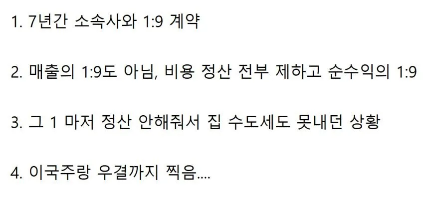 심지어 3집 이후에는 순수익의 비율이 올려진다는 조항도 거론되죠.