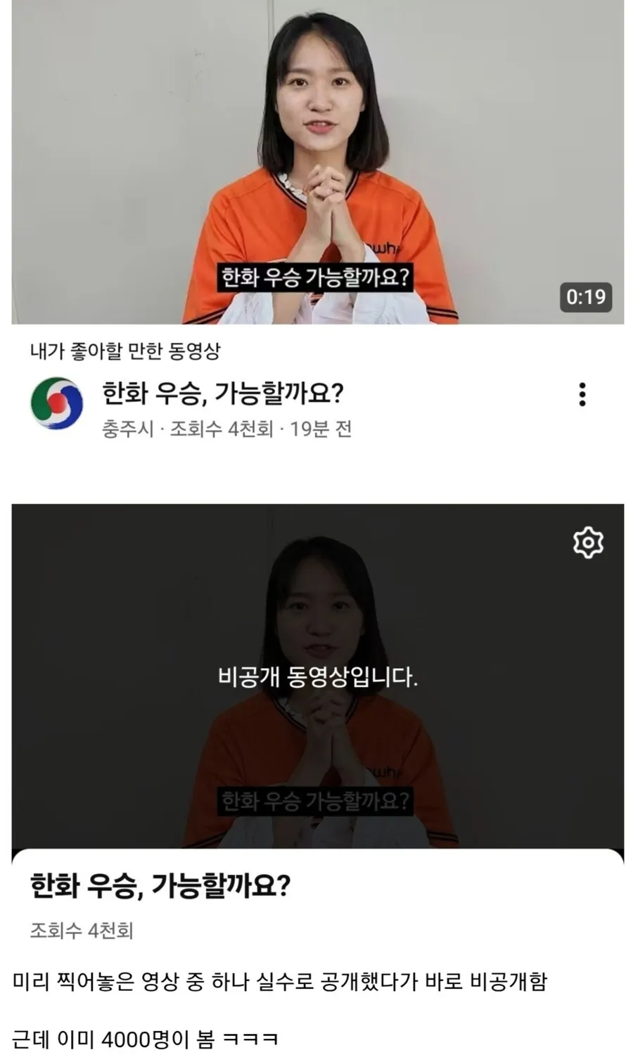 실시간 영상 업로드 실수한 충주맨 류훈아 쪽지보내기자기소개아이디로 검색전체게시물 04:44 762 회 0 건 실시간 영상 업로드 실수로 시작된 충주의 작은 화제, 오늘의 이야기는 바로 이 주인공이죠. 한화 우승 가능할까를 묻는 짧은 영상이 0:19에 올라왔다가 금방 비공개로 바뀌었다고 해요. 충주에서 촬영된 영상으로 보인다는 말도 덧붙었고, 조회수는 이미 4천회를 넘었다고 하죠. 이런 소소한 해프닝이 왜 이렇게 사람들의 관심을 끌었을까요? 목록 이메일 주소는 공개되지 않습니다. 댓글 * 이름 * 비밀번호 * 비밀글 사용 제목 글쓴이 조회 날짜 여자들은 도저히 이해가 안된다는 남자들의 대화방식 ㄷㄷㄷ.jpg 금단비 쪽지보내기자기소개아이디로 검색전체게시물 363 0 1시간 전 금단비 쪽지보내기자기소개아이디로 검색전체게시물 363 1시간 전 로또 당첨자가 제일 많이 한다는 고민 밝은횃불 쪽지보내기자기소개아이디로 검색전체게시물 332 0 2시간 전 밝은횃불 쪽지보내기자기소개아이디로 검색전체게시물 332 2시간 전 생활비 걱정 레전드 금단비 쪽지보내기자기소개아이디로 검색전체게시물 518 0 4시간 전 금단비 쪽지보내기자기소개아이디로 검색전체게시물 518 4시간 전 트럼프 "내 무궁화훈장 어딨냐" 5분마다 확인 금단비 쪽지보내기자기소개아이디로 검색전체게시물 492 0 5시간 전 금단비 쪽지보내기자기소개아이디로 검색전체게시물 492 5시간 전 ⭐ 실시간 영상 업로드 실수한 충주맨 류훈아 쪽지보내기자기소개아이디로 검색전체게시물 763 0 6시간 전 류훈아 쪽지보내기자기소개아이디로 검색전체게시물 763 6시간 전 멕시코 사는 한국인이 느끼는 '한국의 불편함' 밝은횃불 쪽지보내기자기소개아이디로 검색전체게시물 763 0 8시간 전 밝은횃불 쪽지보내기자기소개아이디로 검색전체게시물 763 8시간 전 배달기사들 사이에서 절대 금기시 된다는 행동 백림 쪽지보내기자기소개아이디로 검색전체게시물 857 0 9시간 전 백림 쪽지보내기자기소개아이디로 검색전체게시물 857 9시간 전 오늘 지상파에 등판하게 될 영포티밈.jpg 금단비 쪽지보내기자기소개아이디로 검색전체게시물 787 0 10시간 전 금단비 쪽지보내기자기소개아이디로 검색전체게시물 787 10시간 전 올리버쌤 근황.jpg 하선훈 쪽지보내기자기소개아이디로 검색전체게시물 1,046 0 12시간 전 하선훈 쪽지보내기자기소개아이디로 검색전체게시물 1,046 12시간 전 수박 반품 ㄷㄷㄷㄷ 몽비쥬 쪽지보내기자기소개아이디로 검색전체게시물 809 0 13시간 전 몽비쥬 쪽지보내기자기소개아이디로 검색전체게시물 809 13시간 전 유튜브 프리미엄 안쓰는 사람들 존경함 도레미 쪽지보내기자기소개아이디로 검색전체게시물 762 0 14시간 전 도레미 쪽지보내기자기소개아이디로 검색전체게시물 762 14시간 전 이재용이 어제 셀카 거절한 이유 몽비쥬 쪽지보내기자기소개아이디로 검색전체게시물 749 0 16시간 전 몽비쥬 쪽지보내기자기소개아이디로 검색전체게시물 749 16시간 전 연애를 10대부터 해야 하는 이유 동태탕 쪽지보내기자기소개아이디로 검색전체게시물 833 0 17시간 전 동태탕 쪽지보내기자기소개아이디로 검색전체게시물 833 17시간 전 사치가 심각한 한국 재벌들 밝은횃불 쪽지보내기자기소개아이디로 검색전체게시물 705 0 18시간 전 밝은횃불 쪽지보내기자기소개아이디로 검색전체게시물 705 18시간 전 젊은 의사들은 다 주 80시간 이상 일해요.jpg 동태탕 쪽지보내기자기소개아이디로 검색전체게시물 825 0 20시간 전 동태탕 쪽지보내기자기소개아이디로 검색전체게시물 825 20시간 전 후방추돌 후 차에서 술 냄새 진동...... 지니까꿍 쪽지보내기자기소개아이디로 검색전체게시물 1,051 0 21시간 전 지니까꿍 쪽지보내기자기소개아이디로 검색전체게시물 1,051 21시간 전 일기는 사실 보단 감정 중심으로 써야하는 이유.jpg 아시가루 쪽지보내기자기소개아이디로 검색전체게시물 1,052 0 23시간 전 아시가루 쪽지보내기자기소개아이디로 검색전체게시물 1,052 23시간 전 결혼 앞두고 전신마비 된 남편.jpg 얼음사이다 쪽지보내기자기소개아이디로 검색전체게시물 877 0 25-10-31 얼음사이다 쪽지보내기자기소개아이디로 검색전체게시물 877 25-10-31 인도 여행중 3만2천원 뜯긴 유튜버 옆집총각 쪽지보내기자기소개아이디로 검색전체게시물 957 0 25-10-31 옆집총각 쪽지보내기자기소개아이디로 검색전체게시물 957 25-10-31 대상포진 전조 증상 옆집총각 쪽지보내기자기소개아이디로 검색전체게시물 828 0 25-10-31 옆집총각 쪽지보내기자기소개아이디로 검색전체게시물 828 25-10-31 일본의 트럼프 선물이 호불호 갈리는 이유.jpg 금단비 쪽지보내기자기소개아이디로 검색전체게시물 1,108 0 25-10-31 금단비 쪽지보내기자기소개아이디로 검색전체게시물 1,108 25-10-31 대한민국이 만들 비군사용 핵잠수함 有 지니까꿍 쪽지보내기자기소개아이디로 검색전체게시물 943 0 25-10-31 지니까꿍 쪽지보내기자기소개아이디로 검색전체게시물 943 25-10-31 살 안 찌는 남자에게 1만 칼로리 먹여 보기.jpg 차하영 쪽지보내기자기소개아이디로 검색전체게시물 1,363 0 25-10-30 차하영 쪽지보내기자기소개아이디로 검색