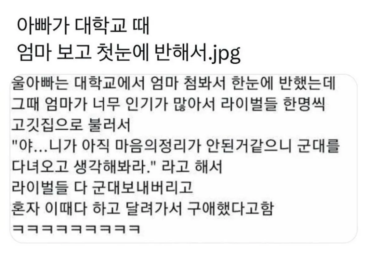 아빠가 대학교때 엄마한테 첫눈에 반해서