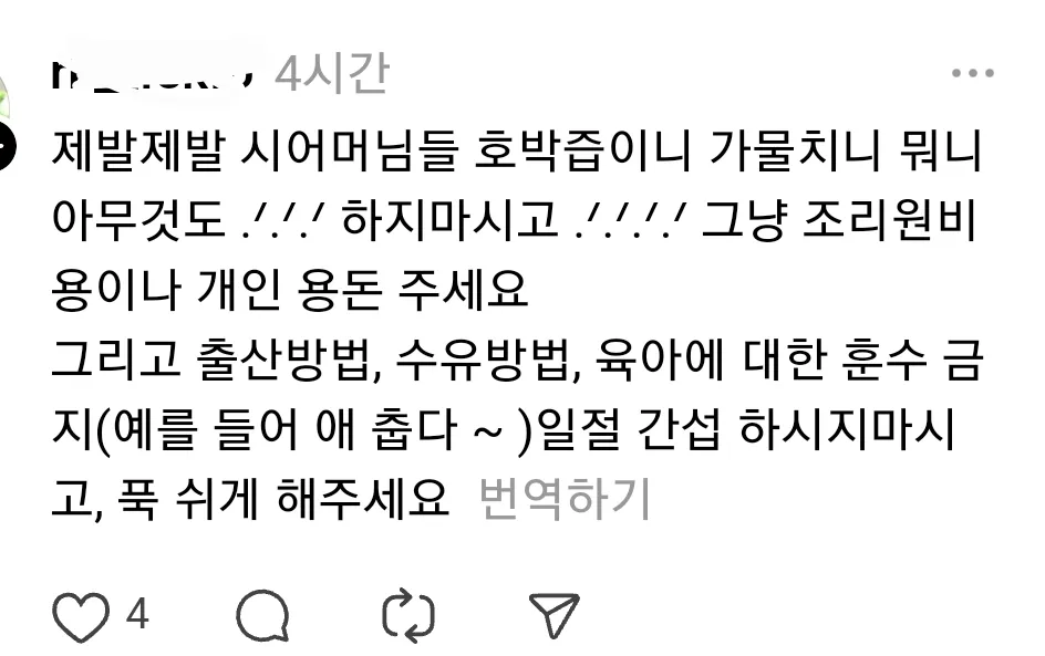 며느리 글 올렸다가 스레드에서 욕먹은 할머니