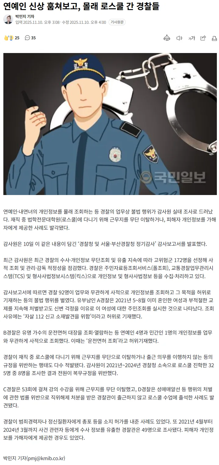 연예인 신상 훔쳐보고 몰래 로스쿨 간 경찰들