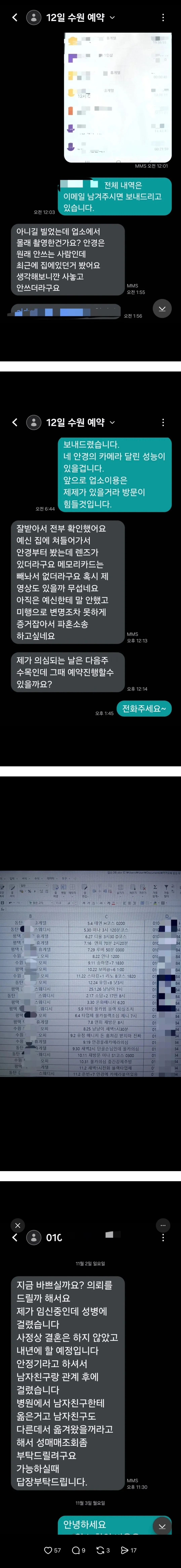배경 이야기를 들려주듯이, 의뢰인은 남편이 지인의 부탁으로 예약을 대신 해준 것이라 주장하지만, 핑계의 패턴은 거의 똑같다. 여러 내역에는 코스명과 날짜가 섞여 있고, '지인이 대신 해줘서...' 같은 해명도 매번 등장한다. 그러나 기록의 흐름을 따라가면 그런 말이 진짜 극히 드물다는 암시가 스쳐 지나간다. 이 대목에서 독자는 한 가지 의문을 품게 된다: 이 기록들은 과연 어디서부터 신뢰할 수 있을까?