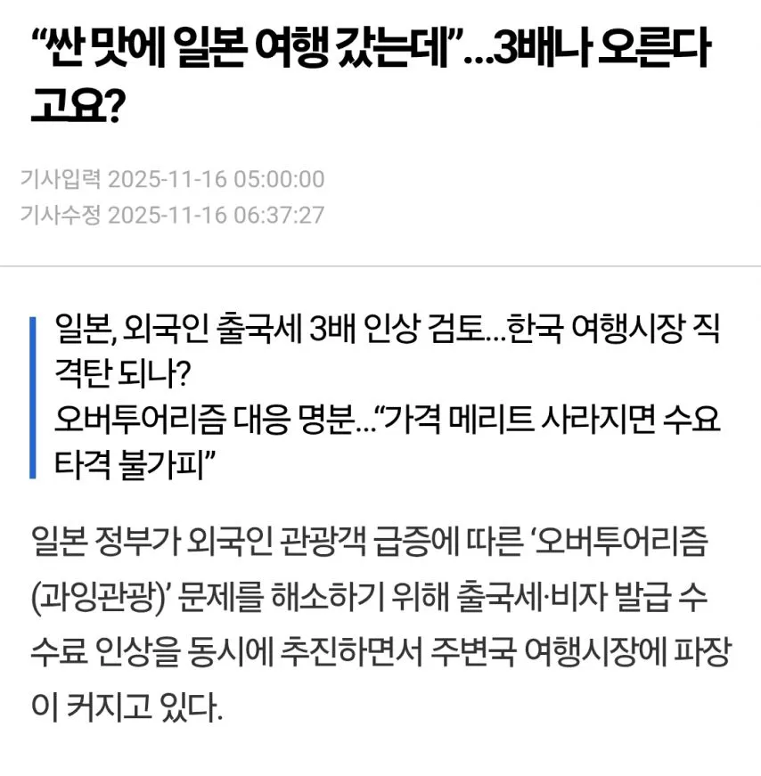 싼맛에 일본 갔는데...日 외국인 출국세 3배 인상.jpg