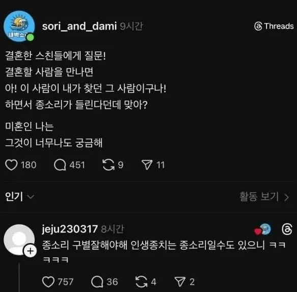 그래도 이런 이야기들이 모여 우리 커뮤니티 분위기를 살짝 바꿔놓은 건 분명해. 종소리가 들리는 순간이 언제 올지 모르는 채로, 결혼이라는 큰 목표를 향해 차근차근 걸어가고 있는 사람들 이야기가 계속 흘러나와. 인연을 찾아가는 여정일 수도 있겠다 싶어, 우리 각자의 마음속 종소리가 어디로 이끌지 아직은 미지수야.