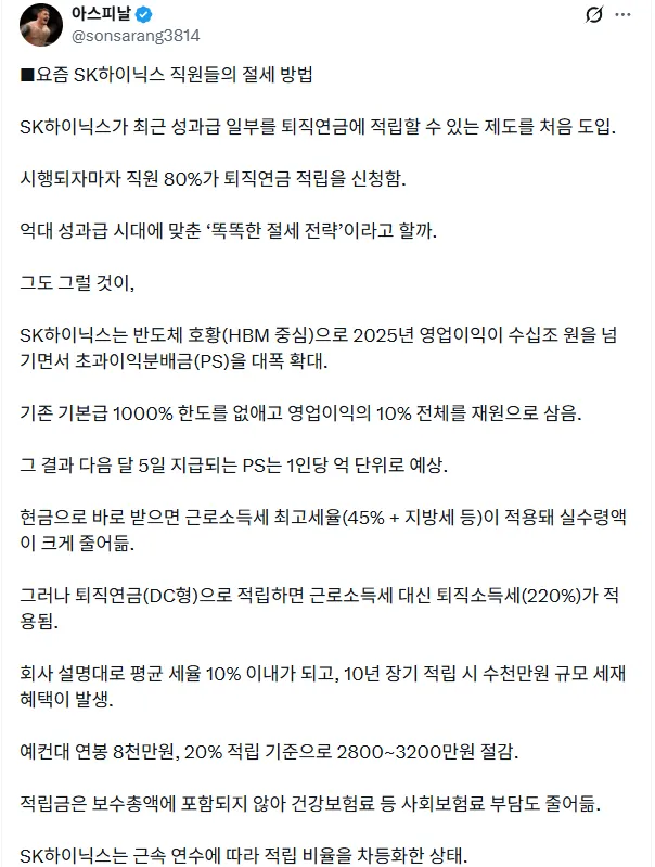 요즘 SK하이닉스 직원들의 절세 방법