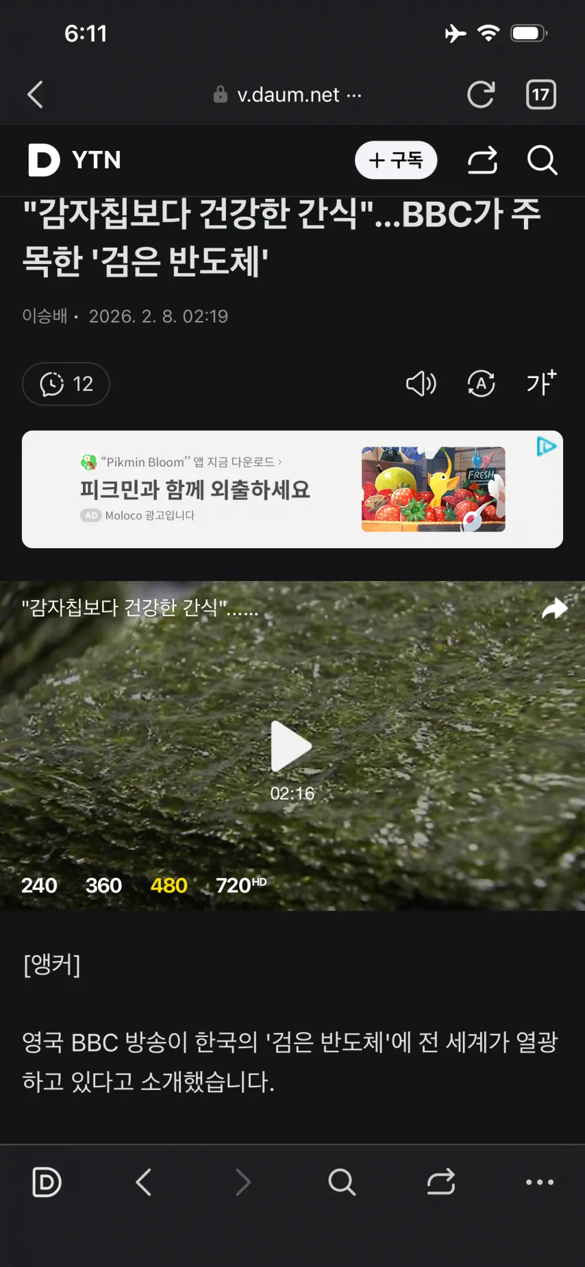 BBC가 한국의 한 간식에 대해 전 세계가 주목하고 있다는 소문이 SNS에 퍼지고 있어. 건강식으로 보도됐다는 이야기가 속속 섞여 돌고 있는데, 정작 어떤 건지 아직은 애매해. 그 간식 이름으로 자주 거론되는 게 있어 보이는데, 사람들은 이를 '검은 반도체'라고 부르는 모양이다. 게다가 영상이나 기사 일부에서 피크민 Bloom 같은 어플 광고와 연결된다고도 들려와서, 왜 이리 화제가 되는지 추측이 난무해.