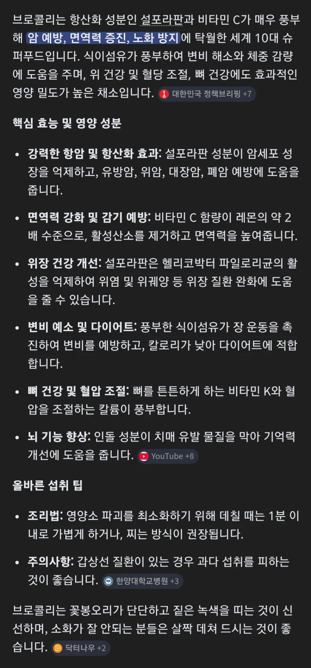 그리고 우리 동네 친구들 사이에서 진짜인지 확인하려고 서로 레시피를 공유하곤 해. 샐러드로 먹거나 살짝 데쳐야 영양이 살아난다느니, 끓이면 설포라판이 손실될 수도 있다느니 말들이 오가. 어떤 이들은 위생과 신선도가 더 중요하다고 하고, 또 다이어트에 도움이 된다며 믿는 눈빛으로 브로콜리를 바라봐. 모두가 서로의 조리법을 비교하며 소소한 대화를 나눠.