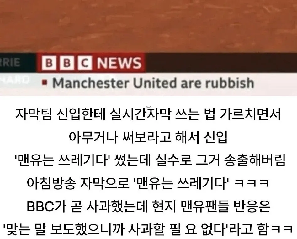 BBC에서 자막 실수로 신입이 쓴 말이 방송에 나갔다는 소문이 도는 거 있지. 실시간 자막 테스트 중에 노출됐다는 얘기가 많고, 현장의 분위기는 완전 난리 났다는 소리도 들려. 맨유를 두고 나온 표현이 화면에 떠 있었는지 여부는 아직 확실치 않대. 팬들 반응도 제각각이래, 뭔가 찜찜한 분위기였던 모양이야.